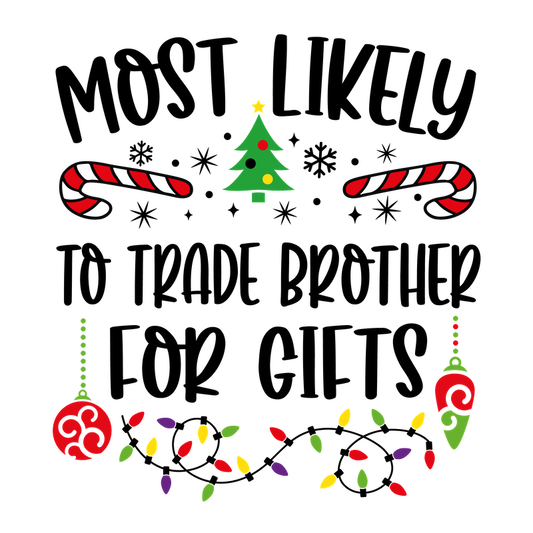 A festive illustration featuring a cheerful Christmas tree, candy canes, colorful lights, and ornaments that capture the holiday spirit.DTF Transfers dtf transfers heat press transfers