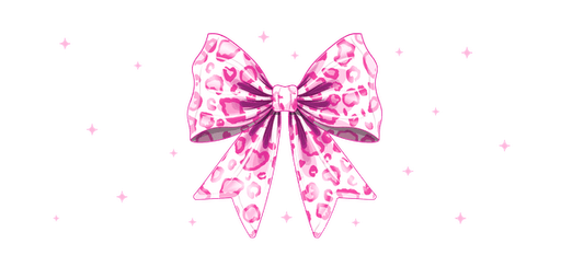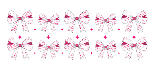 A set of polka dot bow designs in pink and white.UV Transfers