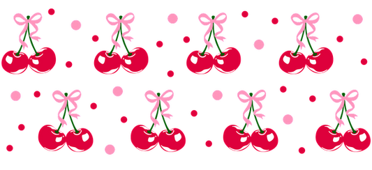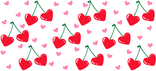 Cute cherry pattern design with hearts and pink cherry leaves.UV Transfers