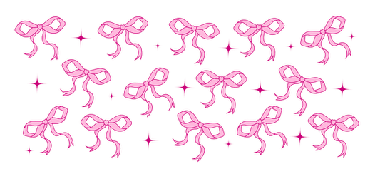 Pretty pink bow design in rows set against a cherubic green background.UV Transfers