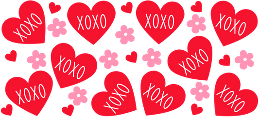 XOXO red hearts and flowers by rikki knight.UV Transfers