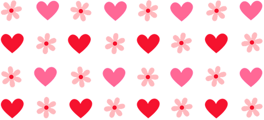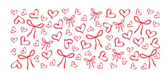 A playful pattern featuring cute pink bows and hearts, perfect for adding a sweet touch to any design.UV Transfers heat press transfers