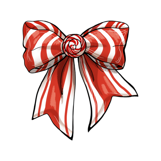 A festive red and white striped bow with a candy swirl center, perfect for holiday decorations or gift wrapping.dtf regular iron