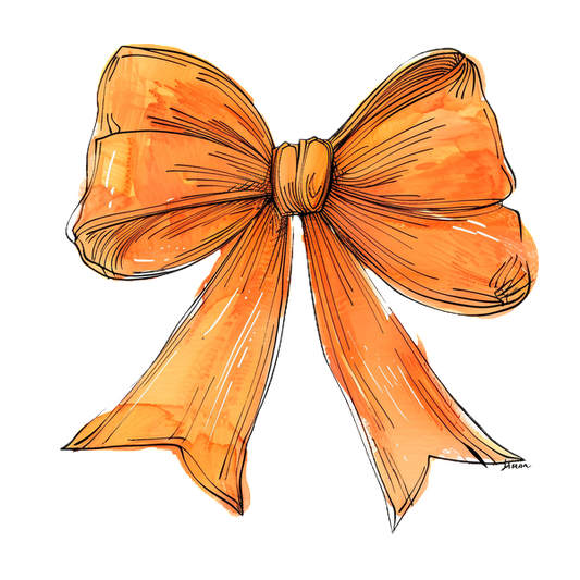 A beautifully illustrated orange bow with flowing tails, perfect for adding a cheerful touch to gifts or decorations.dtf regular iron