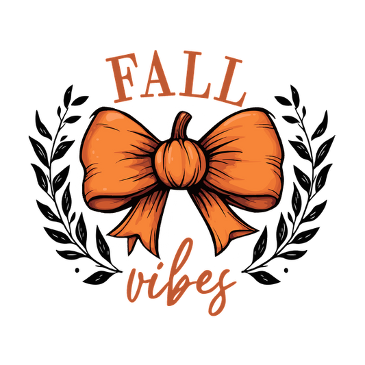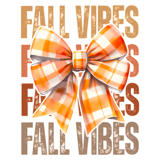 A cheerful orange and white plaid bow with the words "Fall Vibes" in the background, perfect for autumn decor! dtf prints