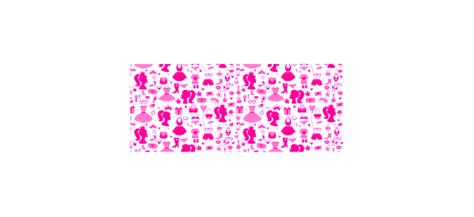 A vibrant pink pattern featuring playful cartoon-like characters and designs.UV Transfers