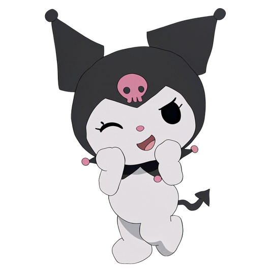 Meet this adorable cartoon character with a playful expression, wearing a black hat adorned with a pink skull!DTF Transfers dtf prints