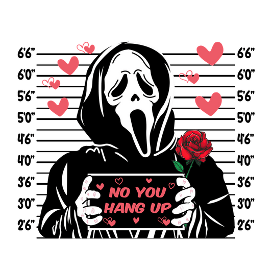Prix habituel À partir de £0.75 GBPPrix habituelPrix unitaire / par£2.40 GBPPrix promotionnel À partir de £0.75 GBP"Halloween t-shirt with Ghostface holding a rose and a love message."DTF Transfers