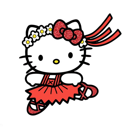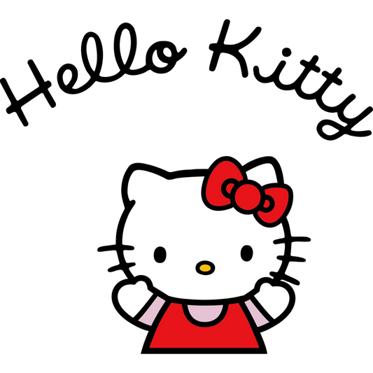 Meet Hello Kitty, the adorable white cat character wearing a red dress and bow, waving cheerfully!DTF Transfers