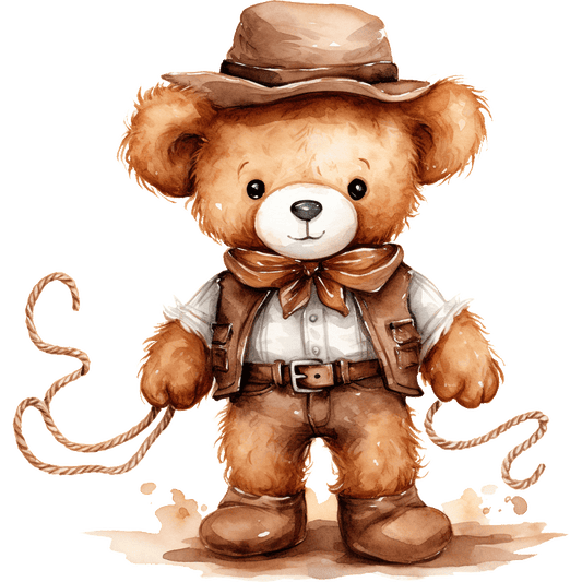 A white T-shirt with a cute cowboy bear design on the chest.DTF Transfers