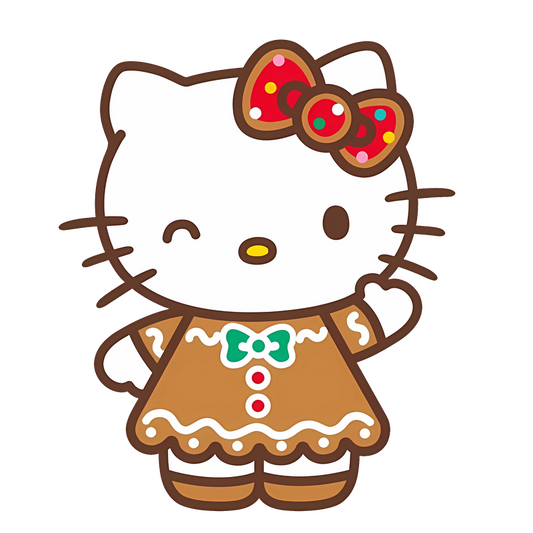Meet Hello Kitty dressed in a charming gingerbread outfit, complete with a cute bow and festive details!DTF Transfers