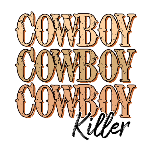 A bold graphic design featuring the words "COWBOY" in a layered style with the word "Killer" in a stylish script. heat press transfers