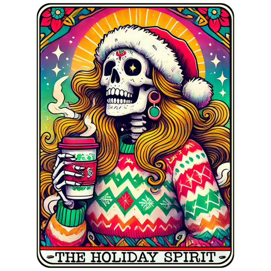 Prix habituel À partir de £0.74 GBPPrix habituelPrix unitaire / par£2.38 GBPPrix promotionnel À partir de £0.74 GBPA vibrant holiday-themed illustration featuring a stylish skeleton woman in a festive sweater, holding a coffee cup and exuding joy. dtf transfers