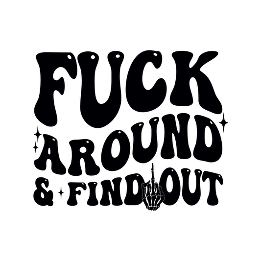 A bold, typographic statement design featuring the phrase "F*** Around & Find Out," perfect for expressing a fearless attitude. dtf transfers
