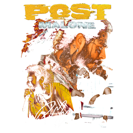A vibrant graphic featuring Post Malone with striking colors, showcasing his unique style and artistic flair, complete with his signature.DTF Transfers heat press transfers