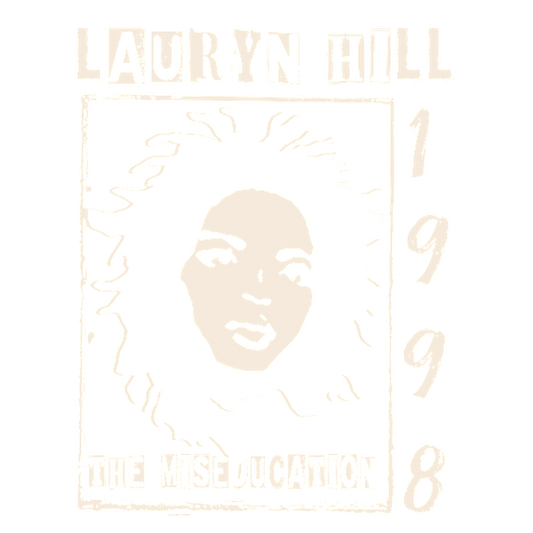 A stylized graphic featuring Lauryn Hill from 1998, celebrating her album "The Miseducation" with a bold, artistic design.DTF Transfers heat press transfers