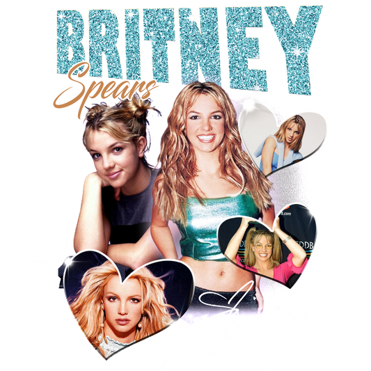 A vibrant collage featuring multiple images of Britney Spears, showcasing her iconic fashion and youthful charm through the years.DTF Transfers dtf transfers