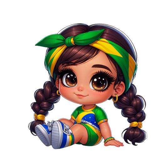 Prix habituel À partir de £0.74 GBPPrix habituelPrix unitaire / par£2.37 GBPPrix promotionnel À partir de £0.74 GBPA cute, chibi-style girl with large eyes, dressed in a Brazil-themed outfit, surrounded by colorful flowers and vibrant greenery.DTF Transfers dtf prints
