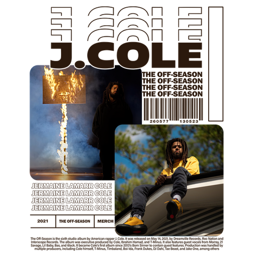 Prix habituel À partir de £0.74 GBPPrix habituelPrix unitaire / par£2.37 GBPPrix promotionnel À partir de £0.74 GBPA dynamic promotional graphic featuring J. Cole amidst dramatic visuals, showcasing his distinctive style and the album "The Off-Season."DTF Transfers dtf transfers