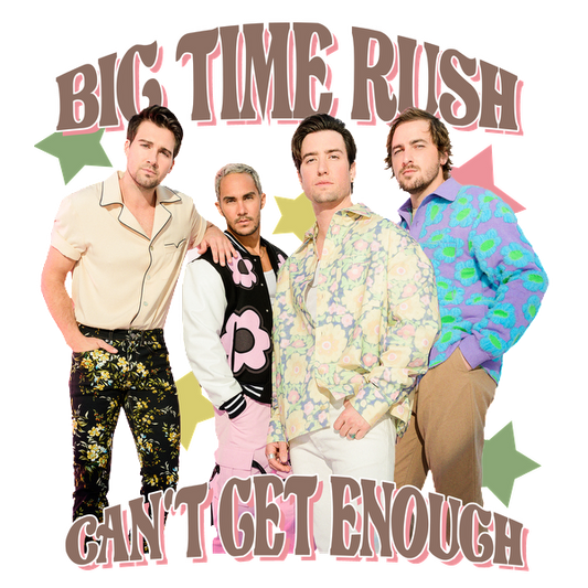 Big Time Rush showcases their vibrant style and energetic vibe in this colorful promotional image for "Can't Get Enough."DTF Transfersdtf regular iron