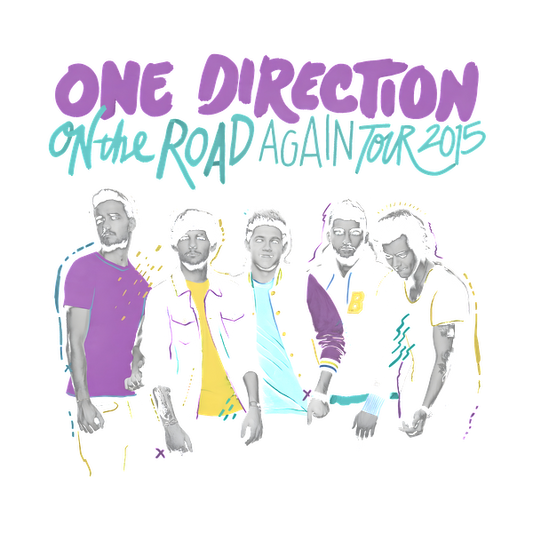 Prix habituel À partir de £0.74 GBPPrix habituelPrix unitaire / par£2.37 GBPPrix promotionnel À partir de £0.74 GBPA vibrant graphic featuring the band One Direction from their 2015 "On The Road Again" tour, showcasing colorful outfits.DTF Transfers dtf prints