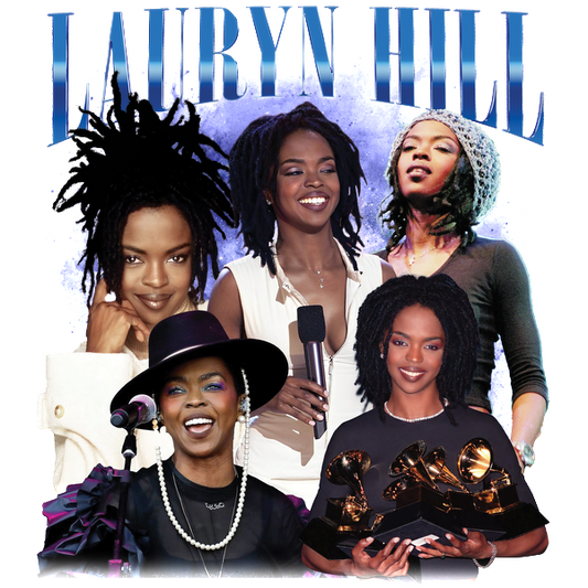 A vibrant collage of Lauryn Hill showcasing her iconic looks and achievements in music, including Grammy wins and live performances.DTF Transfers heat press transfers