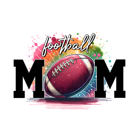 A vibrant design featuring a football and the words "Football Mom" in bold letters, perfect for sporty moms. dtf transfers