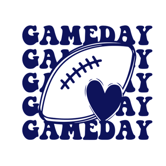 A vibrant "Gameday" graphic featuring a football and a heart, perfect for showing your love for the game! heat press transfers