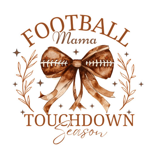 "Celebrate football season with this charming 'Football Mama' design featuring a stylish bow and rustic leaves!" dtf prints