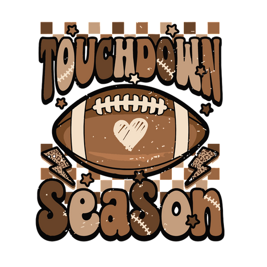 Celebrate football with this fun "Touchdown Season" graphic featuring a heart-shaped football and playful designs! dtf prints
