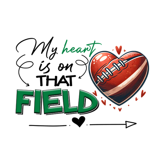 A playful design featuring a heart-shaped football and the word "FIELD," perfect for sports lovers! dtf prints