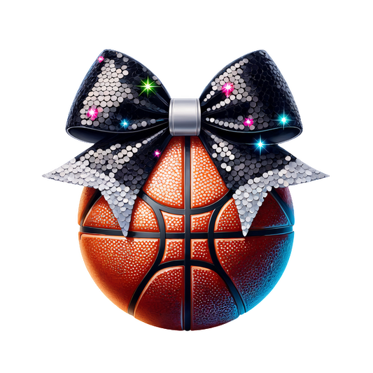A stylish basketball adorned with a sequined black bow, combining sporty flair with a touch of glam.DTF Transfers dtf transfers