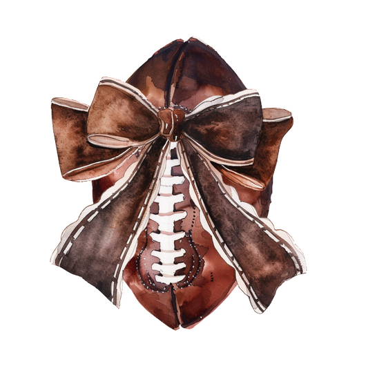 A charming brown football-themed bow with detailed stitching and sporty stripes, perfect for adding a playful touch.dtf regular iron