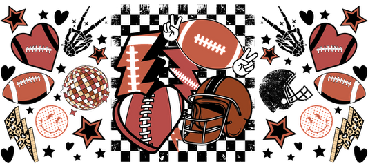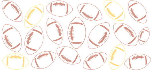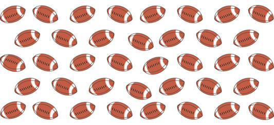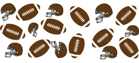 A playful pattern featuring brown footballs and helmets, perfect for sports-themed decorations or apparel.UV Transfersdtf regular iron
