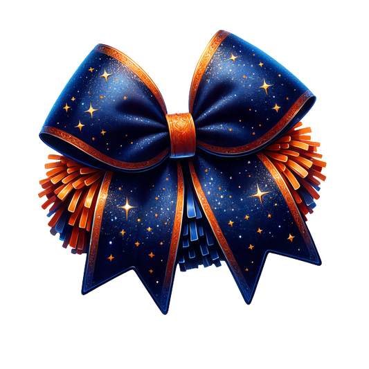 A stunning navy blue bow with shimmering star designs and vibrant pom-pom accents, perfect for gifts or decorations.DTF Transfersdtf regular iron
