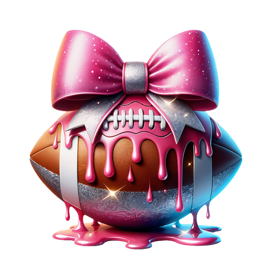 A creative and fun pink football decorated with a sparkling bow and dripping glaze, perfect for playful sports fans.DTF Transfersdtf regular iron