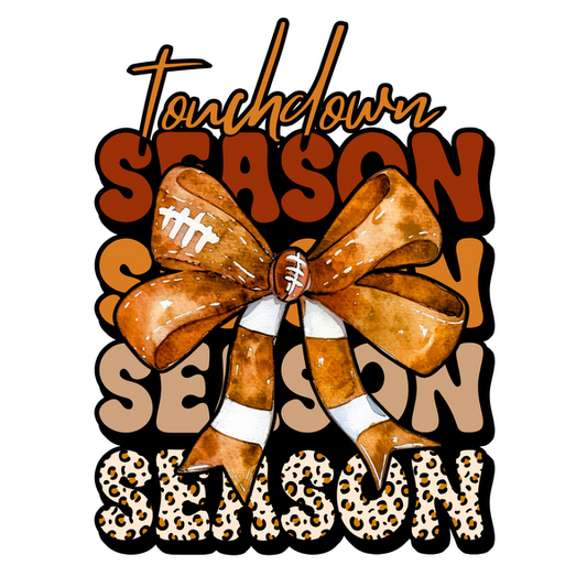 Celebrate football season with this colorful graphic featuring a festive bow, football motifs, and playful text on a black background! heat press transfers