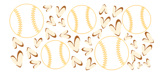a patterned tapestry features baseball silhouettes and hearts.UV Transfers