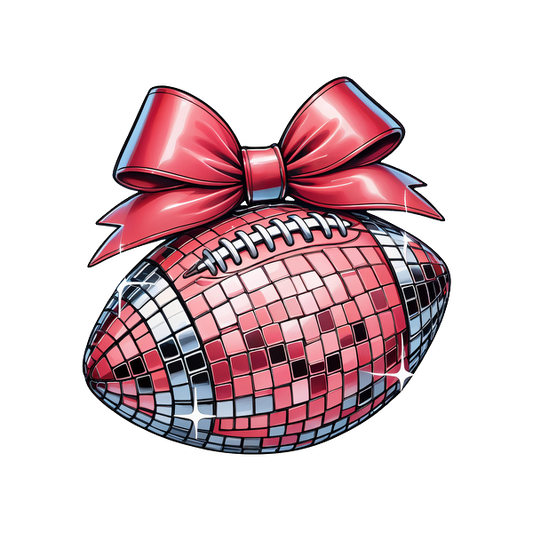 Sparkle up your game with this vibrant, disco ball-themed football featuring a large red bow for a festive touch!