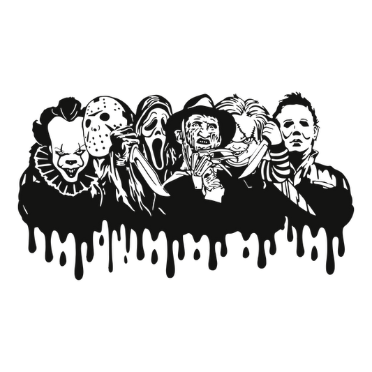 Prix habituel À partir de £0.75 GBPPrix habituelPrix unitaire / par£2.40 GBPPrix promotionnel À partir de £0.75 GBPA vibrant collage featuring iconic horror characters like Freddy Krueger, Michael Myers, and Pennywise, celebrating the horror genre. dtf prints