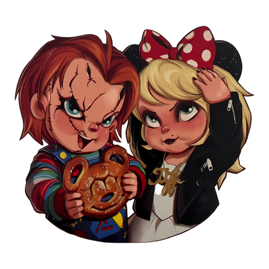 Prix habituel À partir de £0.75 GBPPrix habituelPrix unitaire / par£2.40 GBPPrix promotionnel À partir de £0.75 GBPA playful illustration featuring two creepy-cute characters resembling a doll with stitched features and a girl in a Minnie Mouse bow. heat press transfers
