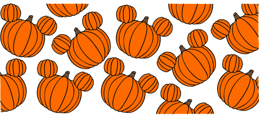 A playful pattern of orange pumpkins featuring Mickey Mouse-inspired silhouettes, perfect for a festive Halloween vibe.UV Transfers heat press transfers