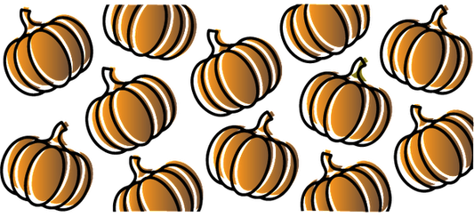 A vibrant pattern of orange pumpkins with distinctive ridges, perfect for capturing the spirit of autumn and harvest.UV Transfers heat press transfers