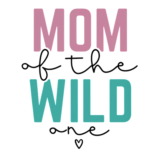 A playful design featuring the phrase "Mom of the Wild One" in colorful, eye-catching typography.DTF Transfers dtf prints
