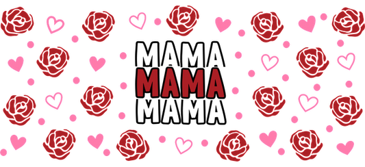 A heartfelt design featuring red roses and pink hearts surrounding the word "MAMA," perfect for celebrating love and appreciation.UV Transfers dtf transfers