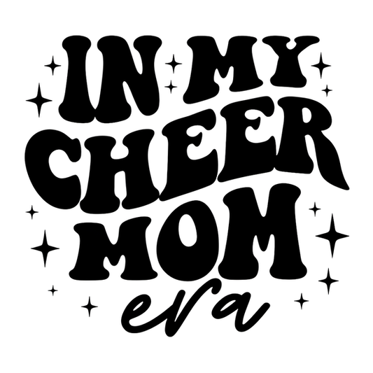 A playful design featuring the phrase "IN MY CHEER MOM EVA," celebrating cheerleading and maternal support.DTF Transfers dtf transfers