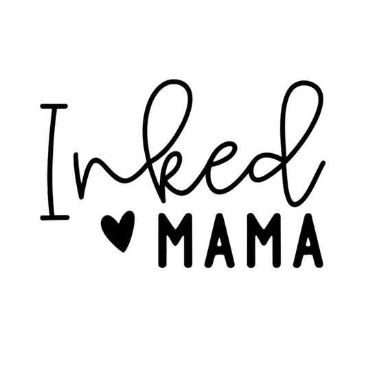 A stylish graphic design featuring the phrase "Inked Mama" with a heart, perfect for tattoo-loving moms.DTF Transfers dtf prints