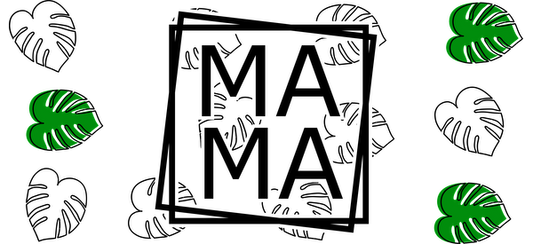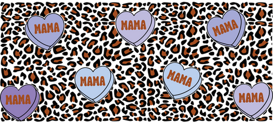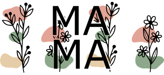 A stylish and playful graphic featuring the word "mama" in various fonts and colors, with a leopard print design included. heat press transfers