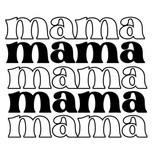 A playful pattern featuring the word "mama" in various bold and curvy styles, perfect for celebrating motherhood.DTF Transfers dtf prints