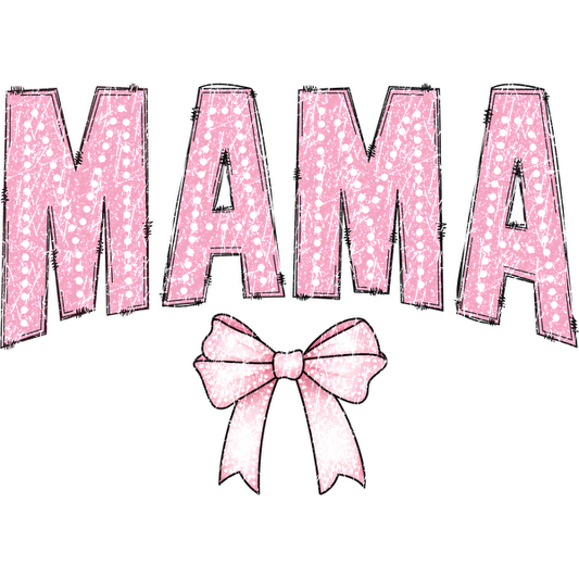 A sparkling pink graphic featuring the word "MAMA" adorned with a cute bow, perfect for celebrating motherhood. dtf transfers